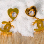 These elegant earrings feature a heart-shaped stud with a sparkling crystal detail, gracefully connected to a dangling intertwined “C” design. The gold-tone finish adds a touch of classic sophistication. Perfect for adding a touch of inspired style to any outfit.