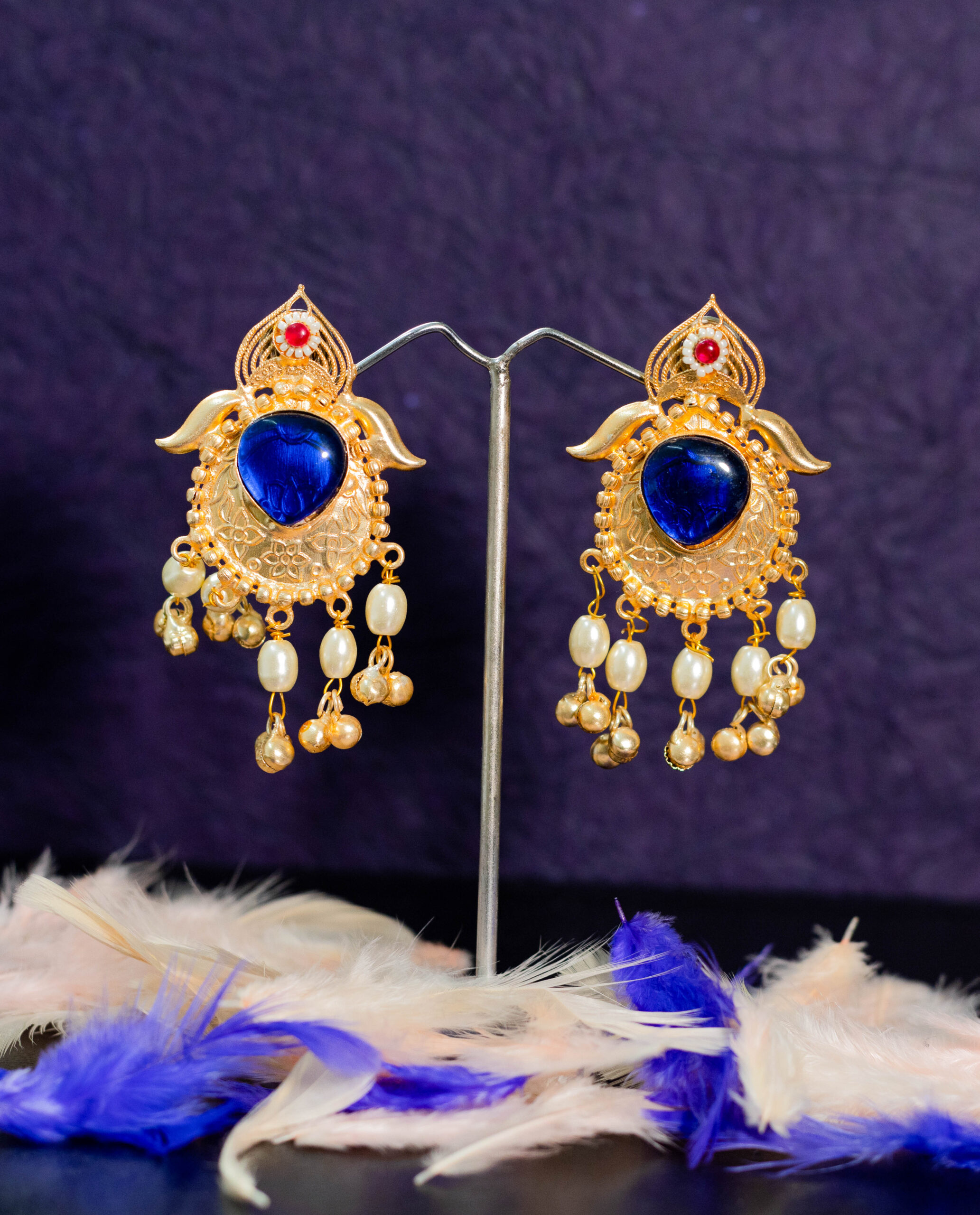 These Kundan Inspired Jhumka Earrings feature a traditional design with colorful faux Kundan stones and delicate simulated pearl embellishments. The gold-plated finish adds a touch of classic elegance. Perfect for adding a touch of cultural flair to any outfit. Lightweight and comfortable for all-day wear.
