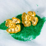 Sculptural flower stud earrings. Gold-plated, textured design. Bold statement style.